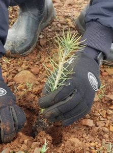 Two dozen volunteers spent Saturday planting trees on a ridge in Concow, California replacing trees that were destroyed in the Campfire wild-fire tragedy that wiped out the city of Paradise and other surrounding communities in Butte county. The tree planting was a partnership between One Tree Planted and the Butte County Resource Center.